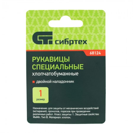 Рукавицы х/б двунитка, наладон двунитка, 1 размер Сибртех (68124)