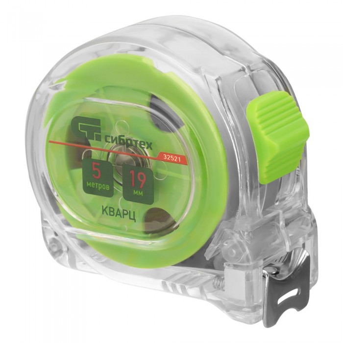 Рулетка Кварц,прозрачный корпус,амортизатор,3 м х 16 мм Сибртех