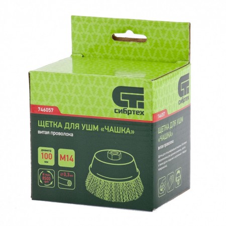 Щетка для УШМ, 100 мм, М14, "чашка", витая проволока Сибртех (746057)