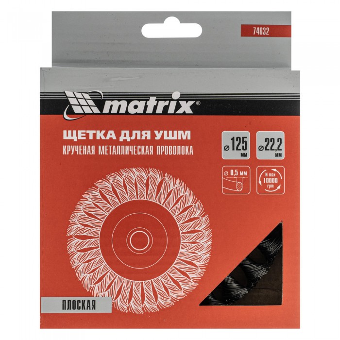 Щетка для УШМ 125 мм, посадка 22.2 мм, плоская, крученая проволока 0.5 мм Matrix (74632)