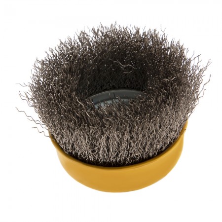 Щетка для УШМ, 75 мм, "Чашка", витая нержавеющая проволока 0.3 мм, М14 Denzel (746043)