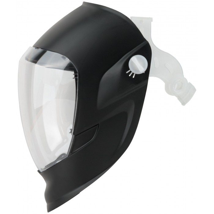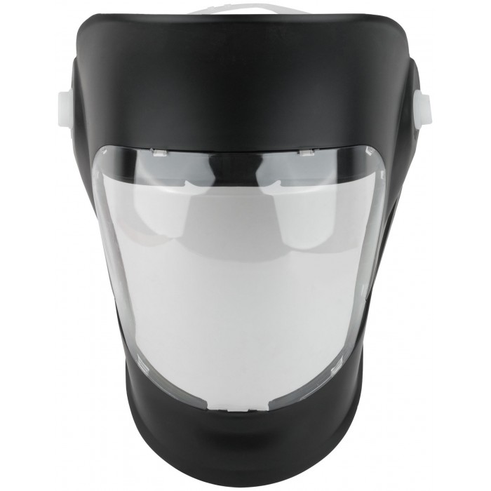 ''Щит''. Профи. С реечным механизмом регулировки оголовья. Предназначен для индивидуальной защиты глаз и лица работника от высокоскоростных частиц камня, дерева, металла и т.п. при механической обработке поверхностей; брызг не разъедающих жидкостей. Материал: ABS- пластик.