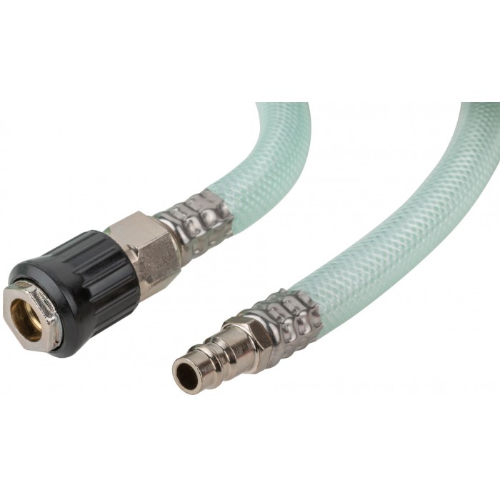 Прямой, износостойкий, усиленный, армированный полимерными нитями. Шланг-удлинитель с коннекторами европейского типа. Соединение быстросъемное 1/4''. Диаметр внутренний - 10 мм, диаметр внешний - 15 мм. Рабочее давление - 6 бар, максимальное давление - 20 бар. Диапазон рабочих температур от -5 до +65 °С. Материал: армированный ПВХ.