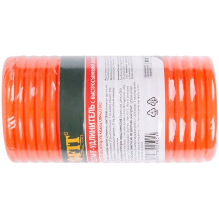 Шланг - удлинитель с коннекторами европейского типа. Соединение быстросъёмное 1/4''. Диаметр внутренний - 5 мм, диаметр внешний – 8 мм. Рабочее давление – 6 бар, максимальное давление – 12 бар. Диапазон рабочих температур от -10 до +50 °С. Материал: полиэтилен.