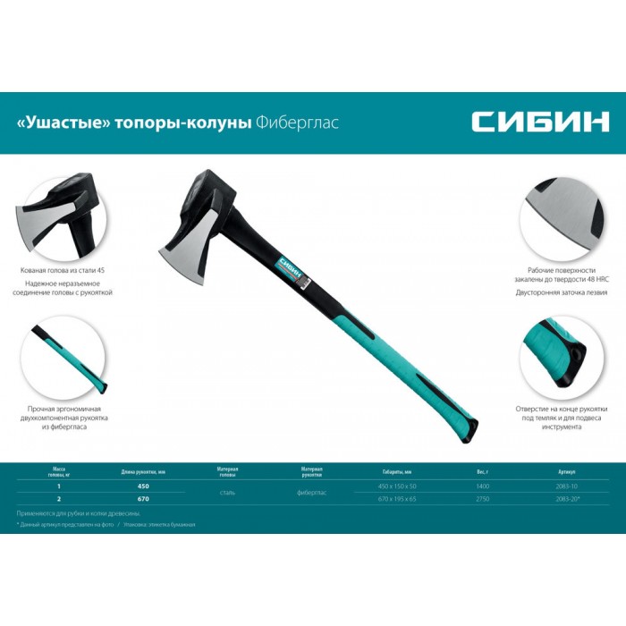 Ушастый топор - колун 2000/3100 г 900 мм СИБИН Фибергласс 2083-20