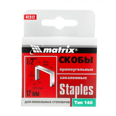 Скобы, 12 мм, для мебельного степлера, закаленные, тип 140, 1000 шт Matrix (41312)