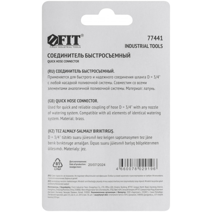 Применяется для быстрого и надёжного соединения гибкого шланга с любой насадкой поливочной системы. Материал: латунь. Упаковка: блистер.