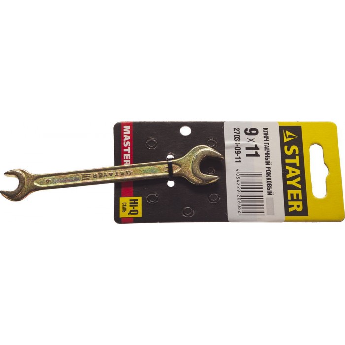Ключ гаечный рожковый 9 x 11 мм STAYER 27038-09-11