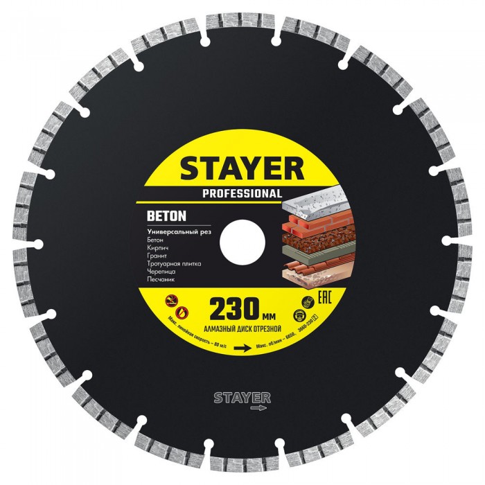 Резка высокопрочного бетона, кирпича, тротуарной плитки, бордюрного камня и других строительных материалов без принудительного охлаждения. Применяется на УШМ.