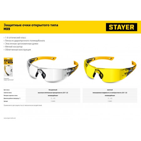 Очки защитные STAYER предназначены для защиты органов зрения от твердых летящих частиц.