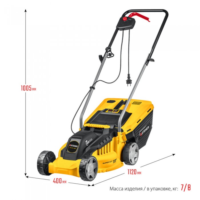 Для подстригания травы при уходе за газоном (с вращающимся ножом). Имеет функции кошения со сбором травы и регулировки высоты кошения