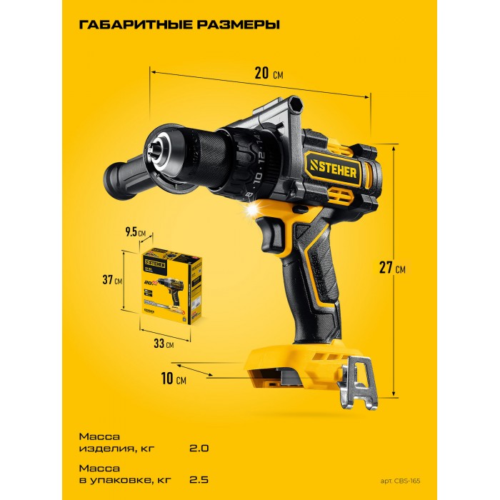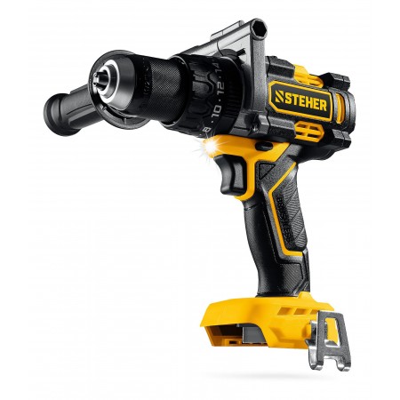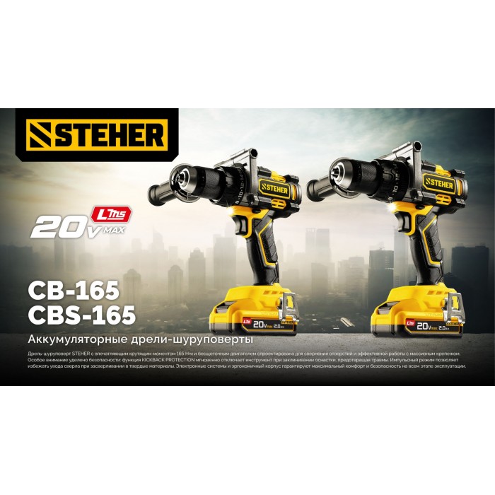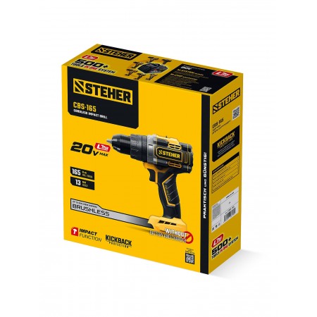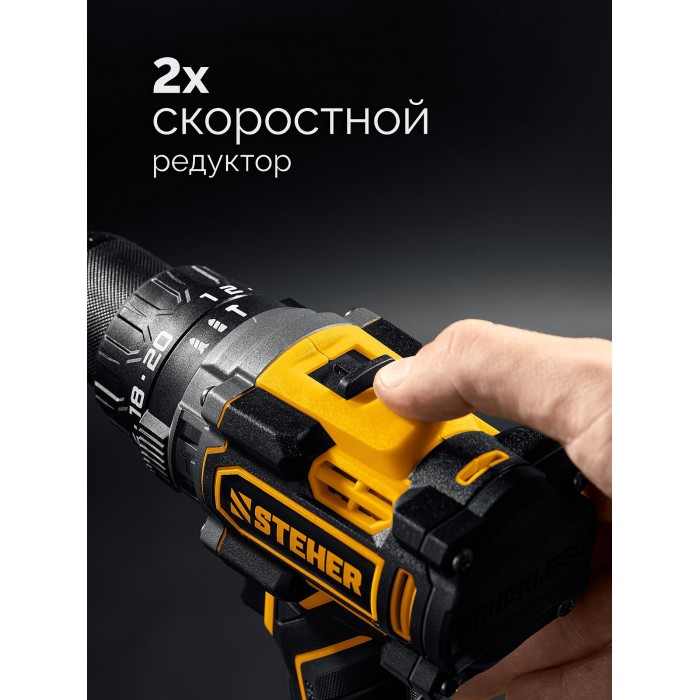 Бесщеточная ударная дрель-шуруповерт STEHER системы LMS с максимальным крутящим моментом 165 Нм предназначена для работы с самым крупным крепежом (саморезы до 12 мм диаметром) и сверления отверстий до 40 мм в дереве. Встроенная защита от обратного удара предотвращает повреждение кисти при резкой блокировке вала. Расширенная функциональность за счет ударного режима работы