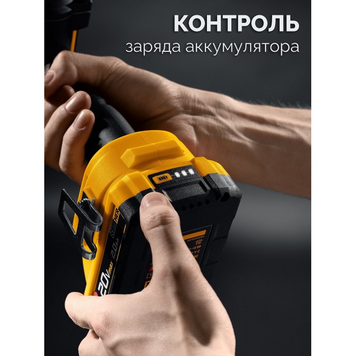 Емкости 2.0 Ач достаточно для непродолжительных работ без большой нагрузки