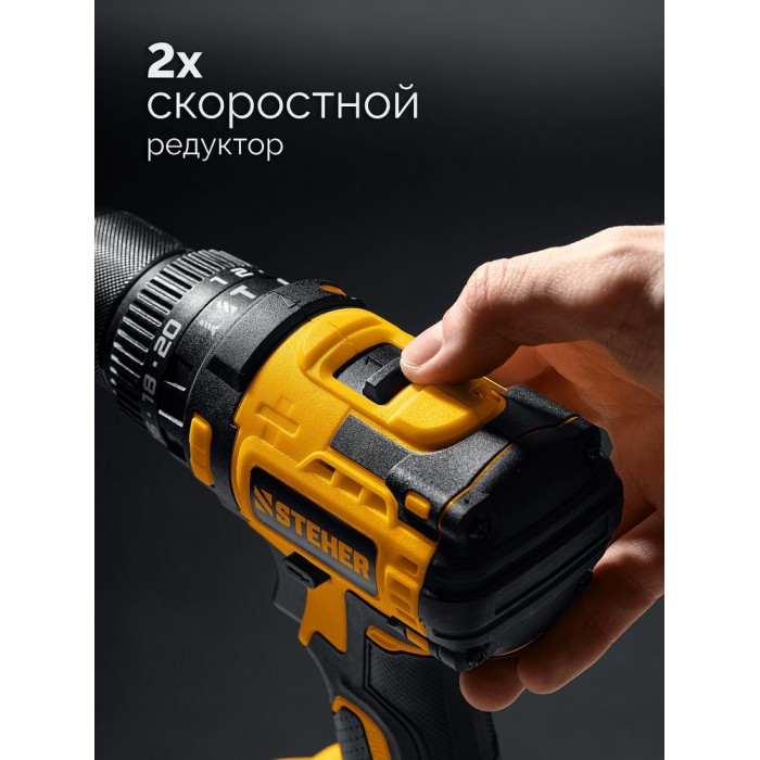 Бесщеточная дрель-шуруповерт STEHER системы LMS с увеличенным крутящим моментом предназначена для быстрого заворачивания саморезов до 8 мм диаметром и сверления отверстий до 30 мм в дереве. Длительная работа от одного заряда обеспечивается эффективным двигателем BRUSHLESS. Расширенная функциональность за счет ударного режима работы