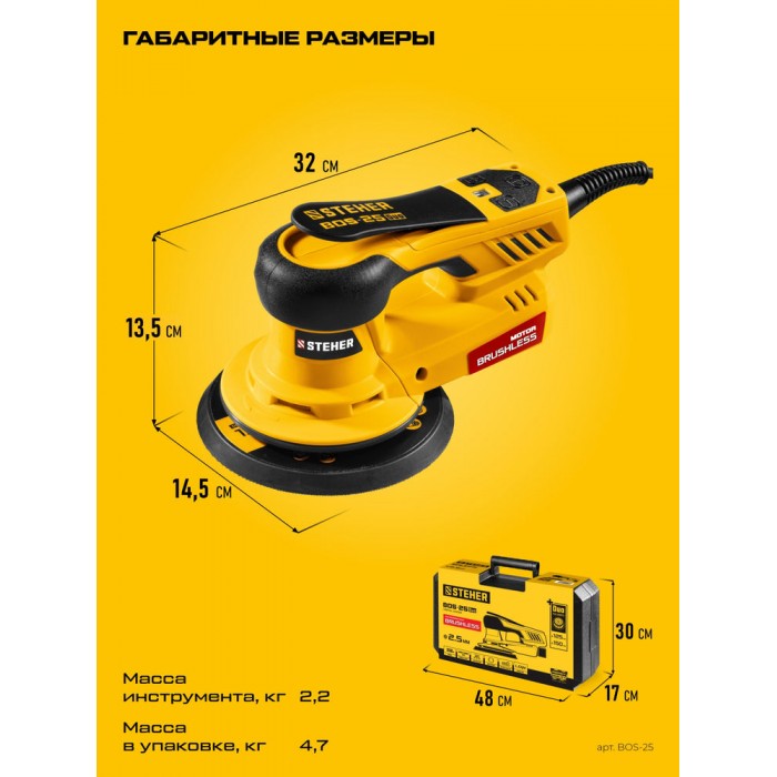- Система крепления шлифовальной бумаги Velcro для быстрой и простой замены листов