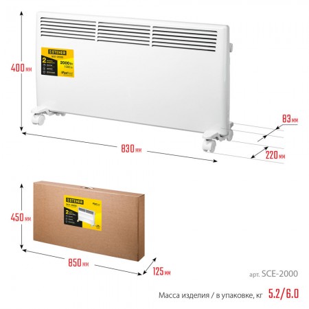 Конвектор электрический Е серия STEHER 2 кВт SCE-2000