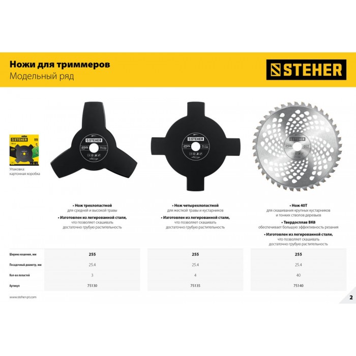 Нож четырехлопастной STEHER - эффективный инструмент для кошения даже грубой растительности на садовом участке. Качественный материал гарантирует увеличенный ресурс, а специальная заточка - легкий рез