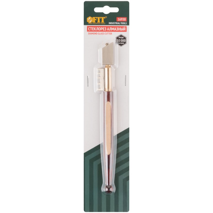 №6. Для резки стекол, толщиной до 5 мм. Ресурс до 10000 м. Материал: нержавеющая сталь, алмазный резак, деревянная ручка. Упаковка: блистер.
