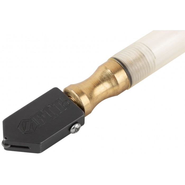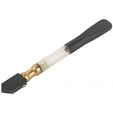 Для резки стекла толщиной до 10 мм. Угол реза 135°. Сменная режущая головка. Заправляется маслом. Материал: инструментальная сталь, пла-