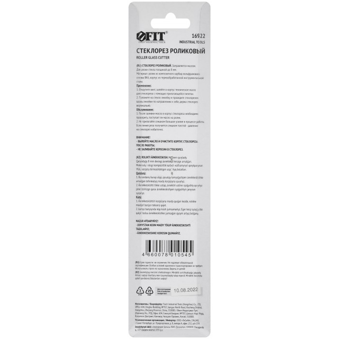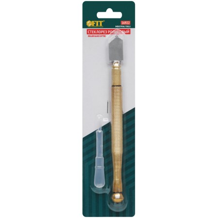 Для резки стекла толщиной до 8 мм. Заправляется маслом. Материал: латунированный корпус из инструментальной стали, твердосплавный ролик. Упаковка: блистер.