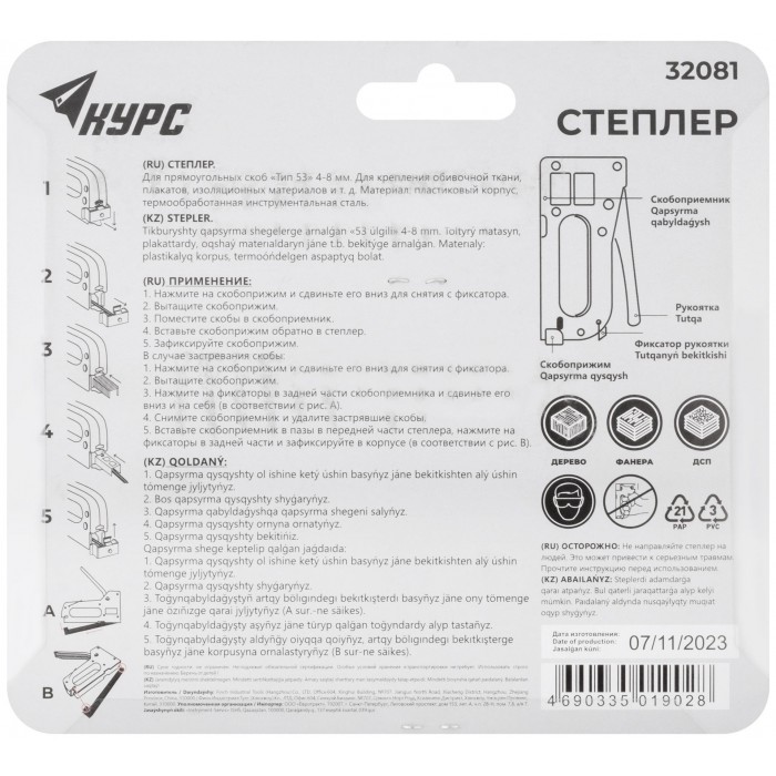 Для скоб ''Тип 53''. Используется со скобами 31304-31314, 31326-31334,31404-31414. Пластиковый корпус, 4-8 мм. Упаковка: блистер.