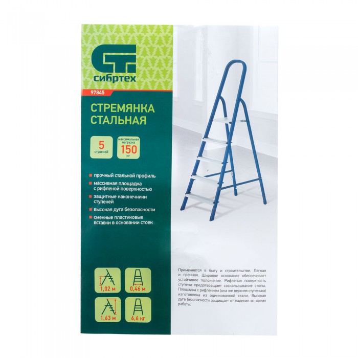Стремянка, 5 ступеней, стальная, Сибртех (97845)