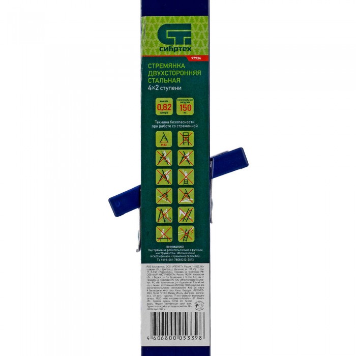Стремянка двусторонняя 4 ступени, стальная, Сибртех (97934)