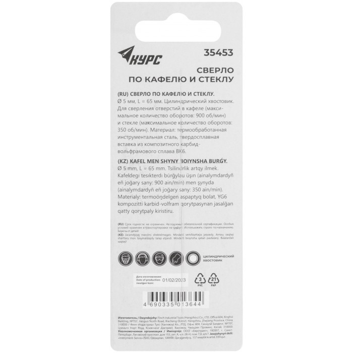Цилиндрический хвостовик. Для сверления отверстий в стекле, кафельной плитке. Материал: инструментальная сталь, твердосплавная вставка. Упаковка: блистер.