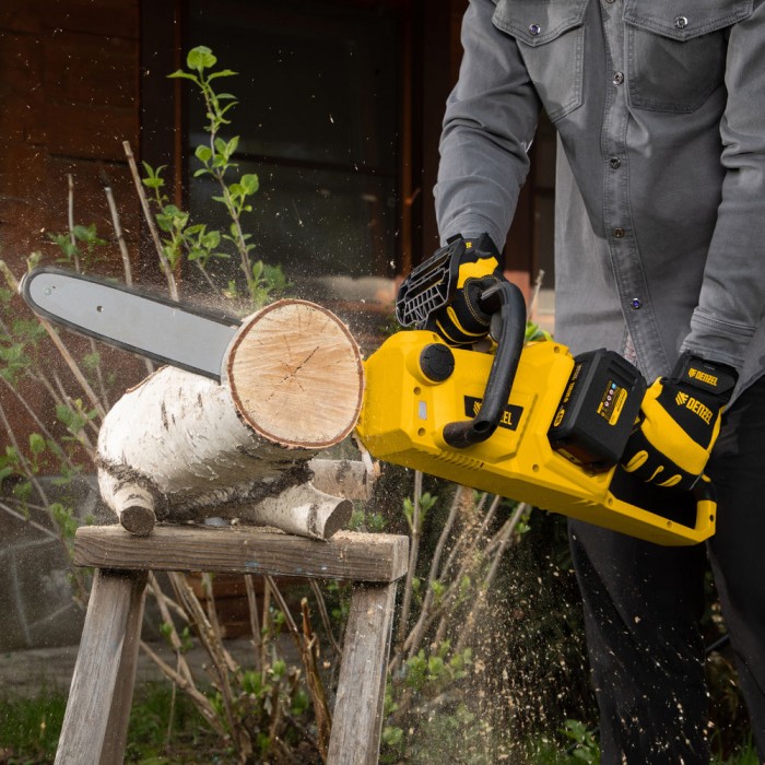 Цепная пила аккумуляторная бесщеточная RCS400-36, Li-ion, 36 В, 4 Ач, шина 400 мм Denzel (58610)
