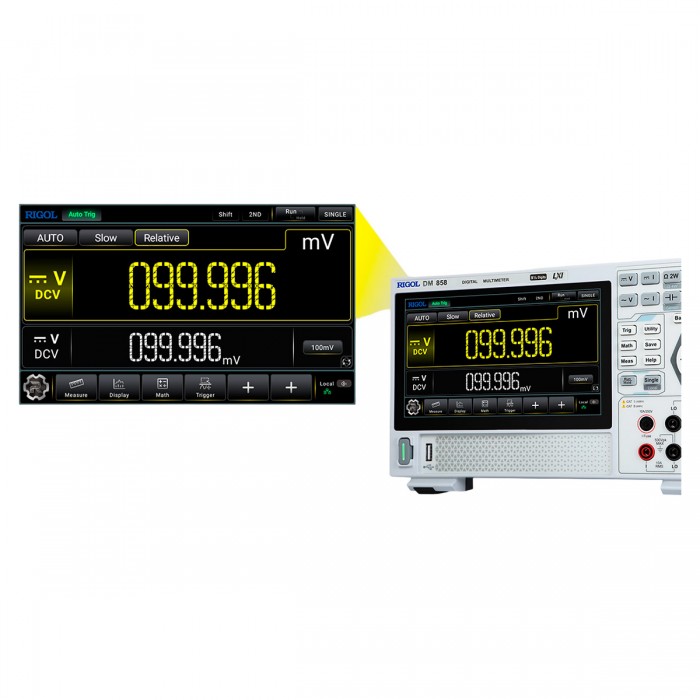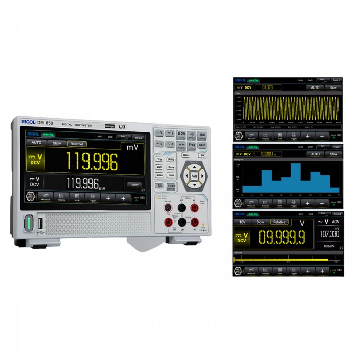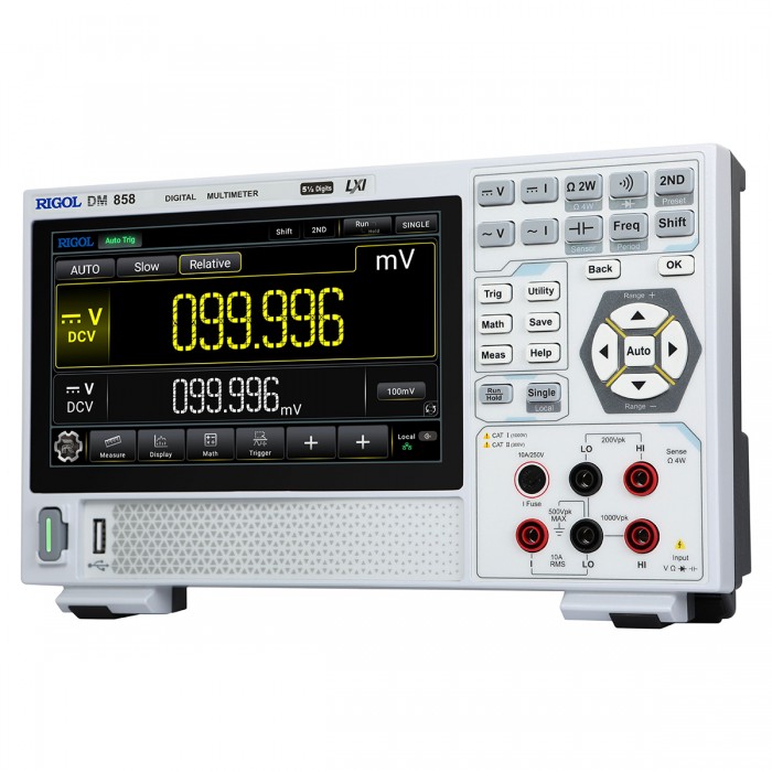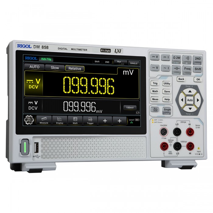 Мультиметр RIGOL DM858 - это прецизионный измеритель с разрешением дисплея 5½ разрядов, отличающийся высокой точностью измерений, высокой производительностью и широкими функциональными возможностями, включая измерение иcтинных среднеквадратических значений (TrueRMS). Цифровой мультиметр RIGOL DM858 имеет функции автоматического измерения и анализа результатов измерений. Измерительные возможности мультиметра RIGOL DM858 можно расширить путём подключения к нему внешних датчиков. Мультиметр RIGOL DM858 построен с использованием новейших технологий и является эффективным инструментом для измерений в самых разнообразных отраслях промышленности, в области научных исследований и образования, сервисных службах.
