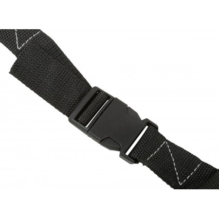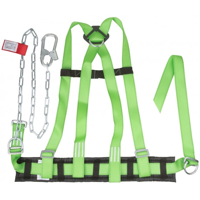 ГОСТ Р ЕН 358-2008. Применяется для защиты человека от падения при выполнении работ на высотных сооружениях. Имеет три точки крепления. Состоит из привязи с наплечными лямками (ремень с пряжкой, кушак, два D-кольца на поясе и одно на спине) и стропа (лента/цепь, монтажный карабин). Материал: полиэфир, сталь. Упаковка: п/э пакет.