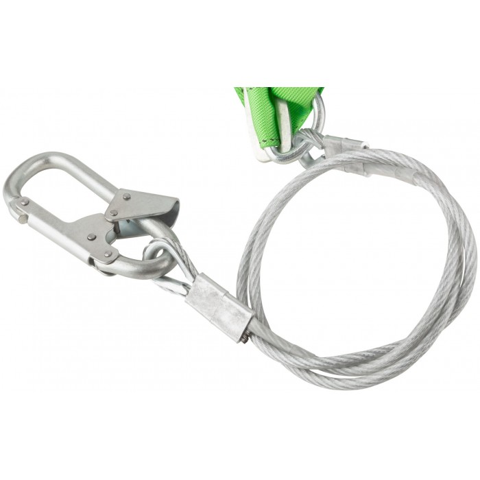 ГОСТ Р ЕН 358-2008. Применяется для удержания и защиты человека от падения с высоты, позиционирования и безопасного перемещения при выполнении работ на высотных сооружениях. Имеет две точки крепления. Состоит из пояса (ремня с пряжкой, уширенного кушака, двух D-колец) и стропа (металлический трос в ПВХ оболочке, монтажный карабин). Материал: пенолон, полиамид, сталь, ПВХ. Упаковка: п/э пакет.