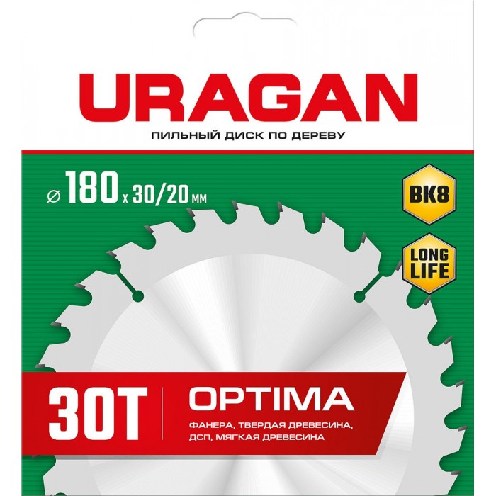 Диск пильный по дереву Optima URAGAN 180х30/20 мм 30Т 36801-180-30-30_z01