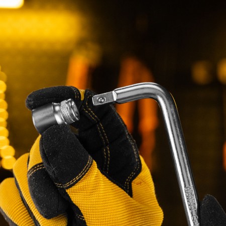 Вороток Г-образный, 150*40 мм, квадрат 1/4", CrV, матовый хром Denzel