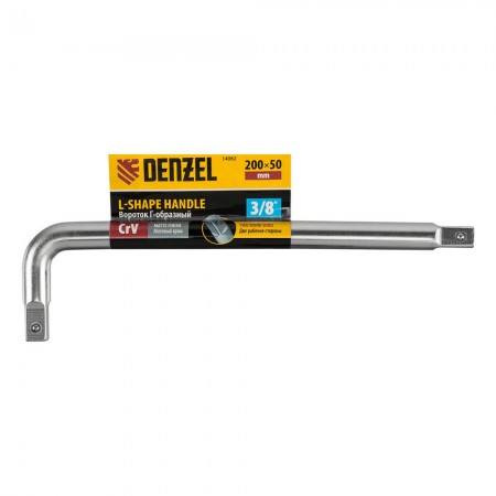Вороток Г-образный, 200*50 мм, квадрат 3/8", CrV, матовый хром Denzel