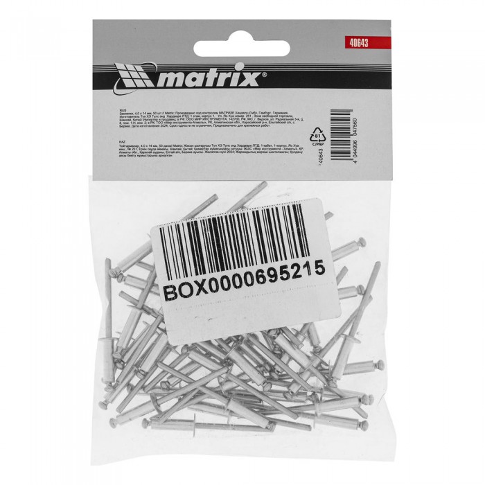 Заклепки, 4.0 х 14 мм, 50 шт. Matrix (40643)