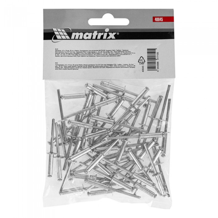 Заклепки, 4.0 х 16 мм, 50 шт. Matrix (40645)