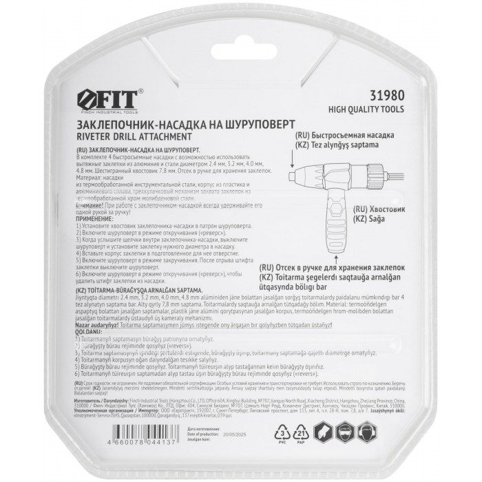 Заклепочник-насадка на шуруповерт 2,4-4,8 мм (31980)