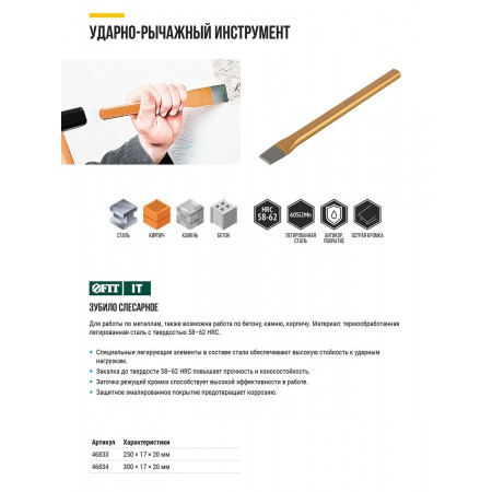 Зубило слесарное 300х17х20 мм (46834)