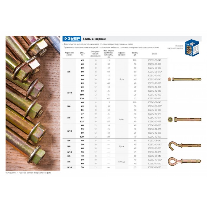 Для монтажа конструкций к полнотелым основаниям: поверхностям из бетона, полнотелого кирпича или природного камня. Анкер устанавливается в предварительно просверленное и очищенное от буровой муки отверстие и расклинивается при закручивании резьбового стержня