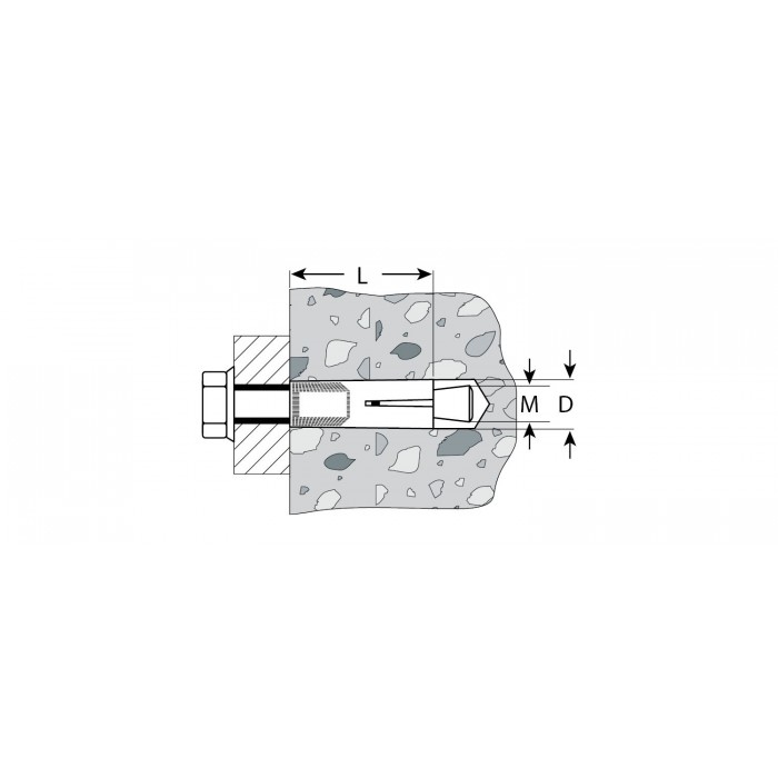 Для монтажа конструкций к полнотелым основаниям: поверхностям из бетона, полнотелого кирпича или природного камня. Анкер устанавливается в предварительно просверленное и очищенное от буровой муки отверстие и расклинивается при закручивании болта