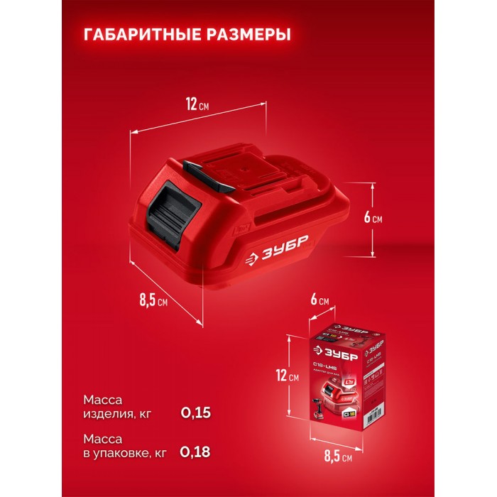 Адаптер для АКБ С1-18 под инструмент LMS 18 В ЗУБР C18-LMS