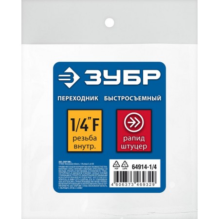 Переходник 1/4"F – рапид штуцер ЗУБР Профессионал 64914-1/4