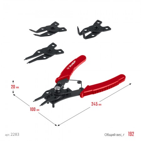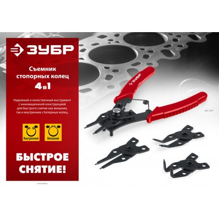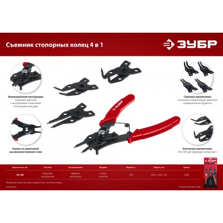 Инновационная конструкция позволяет работать с внутренними и внешними стопорными кольцами
