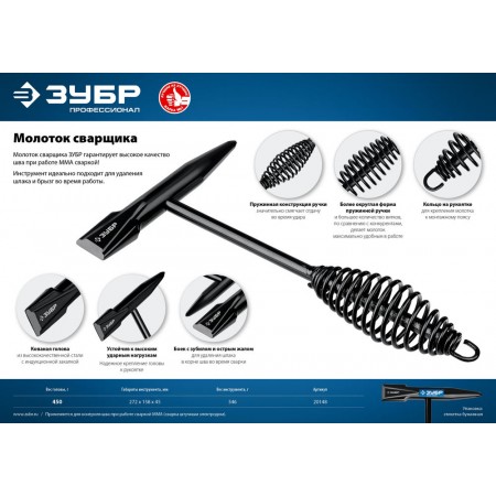 Профессинальный надежный и удобный инструмент сварщика! Молоток сварщика ЗУБР гарантирует высокое качество шва при работе ММА сваркой! Инструмент идеально подходит для удаления шлака и брызг во время работы.