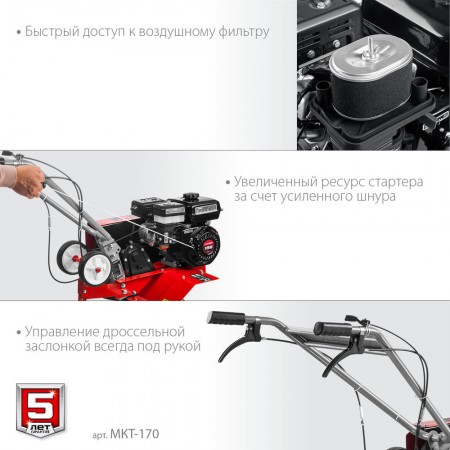 Рукоять культиватора с возможностью регулировки по вертикали делает управление более комфортным