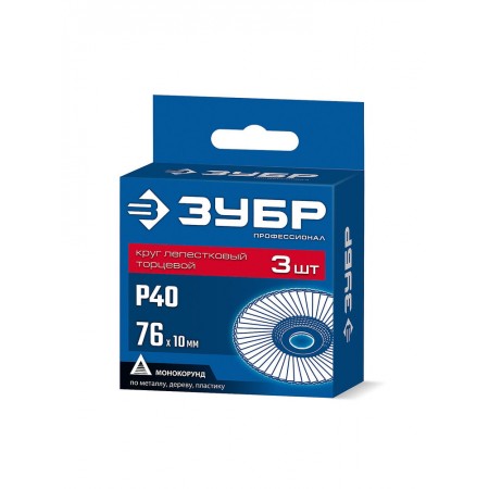 Круг лепестковый торцевой (КЛТ) для мини-УШМ 76 х 10 мм, P40, 3 шт ЗУБР Профессионал 36591-76-40-H3
