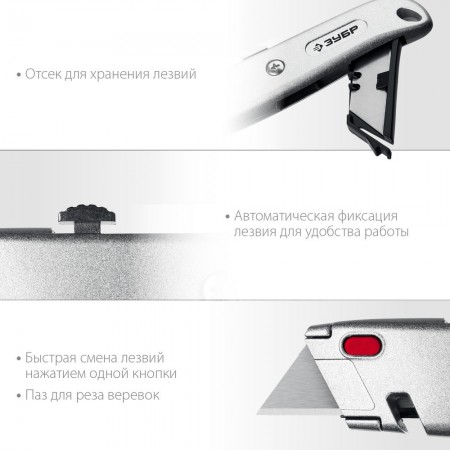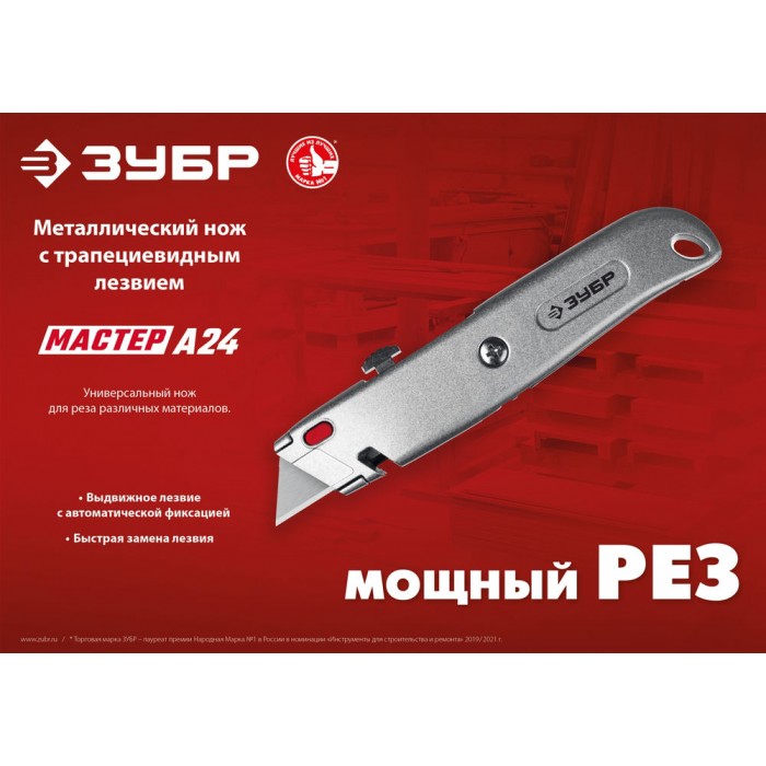 Универсальный металлический нож с трапециевидным лезвием А24 ЗУБР 09228