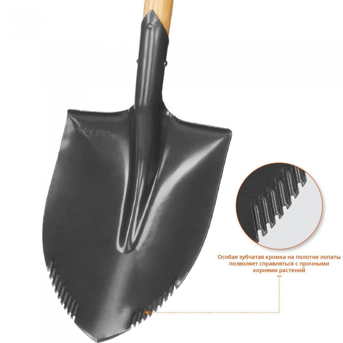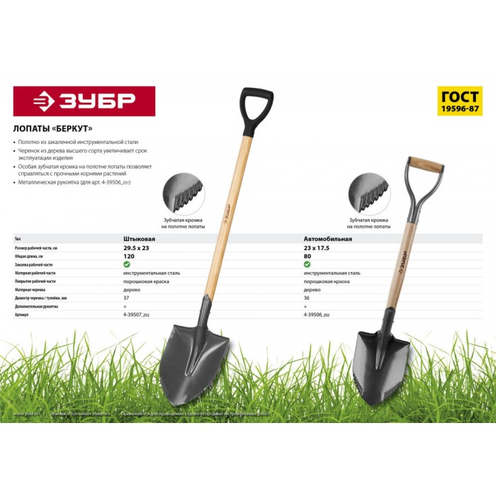 Лопата 228 х 173 х 800 мм полотно 1.6 мм с зубцами закалено дерев.черенок высш. сорт с рукояткой автомобильная Профессионал ЗУБР БЕРКУТ 4-39506