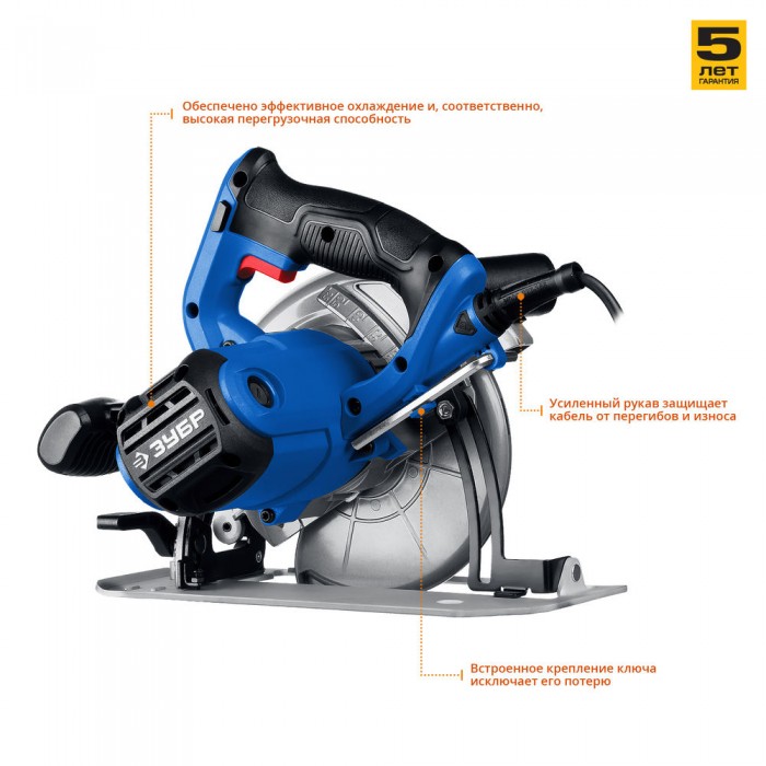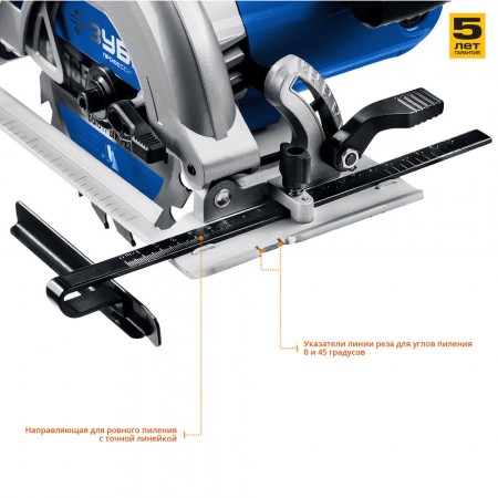 - Бесступенчатая регулировка глубины и угла пиления с удобными шкалами для точных работ